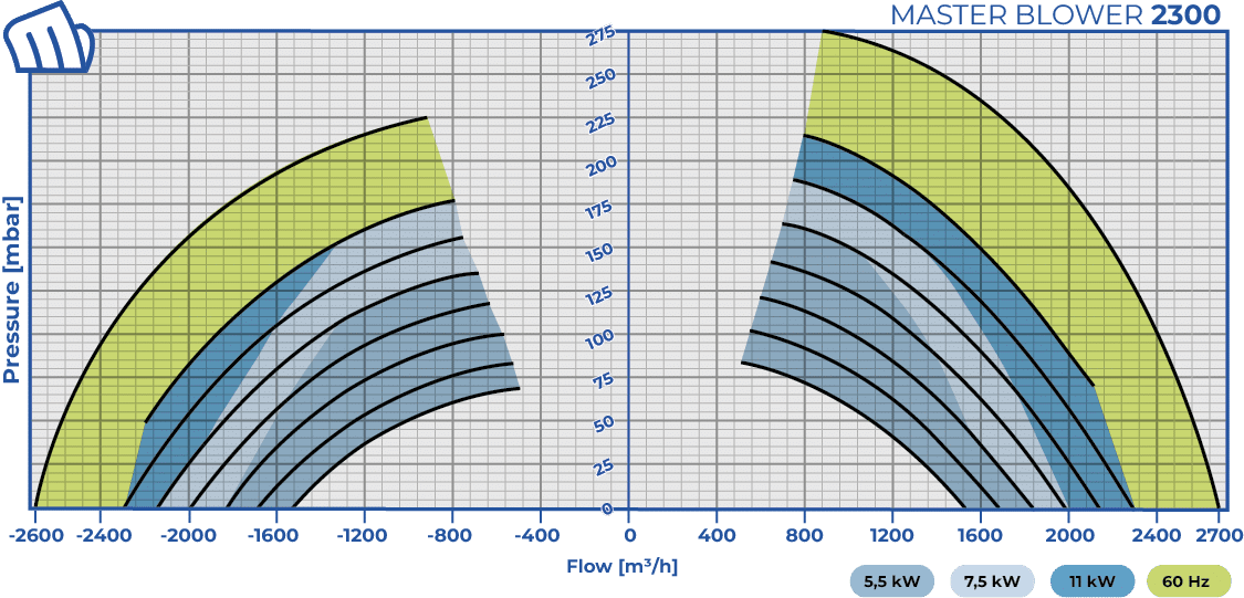 De MB 2300 is een high-speed turboblower die hogere efficiëntie biedt bij vergelijkbare luchtprestaties. Hierdoor kan vaak met een lager motorvermogen worden gewerkt, wat resulteert in lagere energiekosten en een hoger rendement.