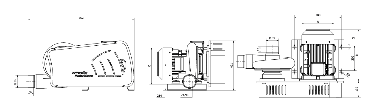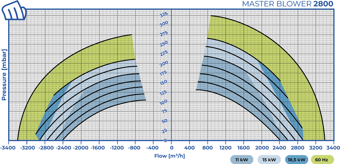 Een turboblower, zoals de Master Blower serie, werkt volgens een high-speed principe waarbij met zeer hoge toerentallen efficiënt lucht wordt verplaatst. Hierdoor kan bij vergelijkbare luchtprestaties vaak met een lager motorvermogen worden gewerkt dan bij conventionele blowers of zijkanaalventilatoren.